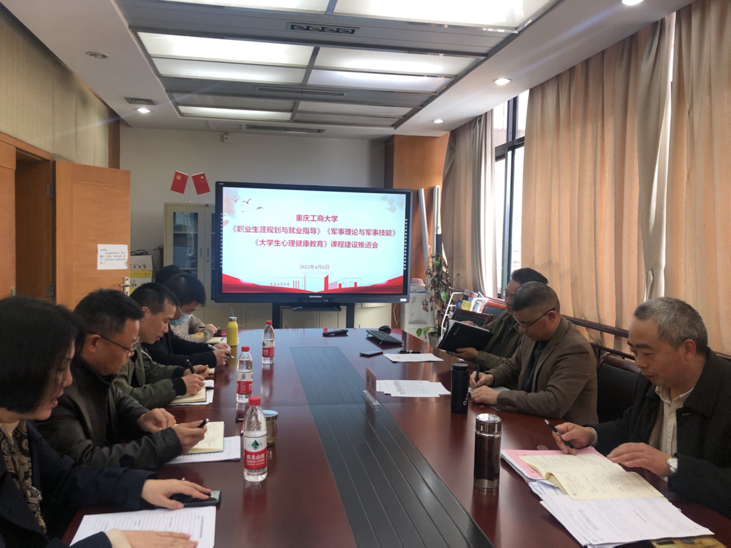 会上,《职业生涯规划与就业指导》《军事理论与军事技能》和《大学生心理健康教育》三门课程负责人围绕教育部要求和规定,结合各自课程的建设情况和特点,分别从课程发展历程、课程建设目标、任务、课程教学团队、教研活动开展、课程授课质量、课程建设成效、我校落实上级要求等情况等进行了汇报。申卫东、张朝毅、陈龙国、王静、骆东奇、韦晓兰就《职业生涯规划与就业指导》《军事理论与军事技能》和《大学生心理健康教育》三门课程的建设情况进行了讨论和交流,并就教学团队建设、课程内容优化、上级要求的落实、教学方法等提出具体建议和意见。