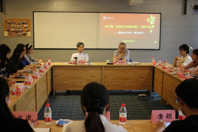为更好了解同学们在校的学习生活情况,6月2日上午,学校在启智楼80412C举办了主题为“我的大学生活(期中座谈)”的第37期“校领导与你面对面”主题午餐会。校长孙芳城、副校长李国军,以及相关职能部门负责同志、南岸校区本科生和研究生代表参会。会议由李国军主持。