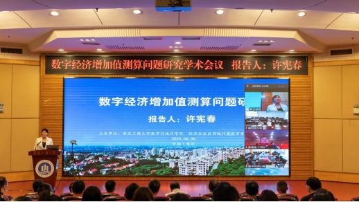 为庆祝米兰网站建校70周年华诞,6月6日上午,由数学与统计学院主办的迎校庆系列学术交流活动之“数字经济增加值测算问题研究”学术会议在线上线下顺利举行,国家统计局原副局长、北京大学国家发展研究院特约研究员许宪春教授受邀在线作学术报告。线下会议主会场设在博智楼7200报告厅,学校党委常委、副校长张波、我校86届统计专业校友——重庆市统计局党组成员、副局长秦瑶出席并致辞,重庆市统计局相关处室领导、数学与统计学院领导班子、师生代表近百人参加了线下会议,来自中南大学、湖南大学、南方科技大学、桂林电子科技大学和青岛理工大学等高校的近500名师生参加了线上会议。会议由数学与统计学院院长陈义安主持。