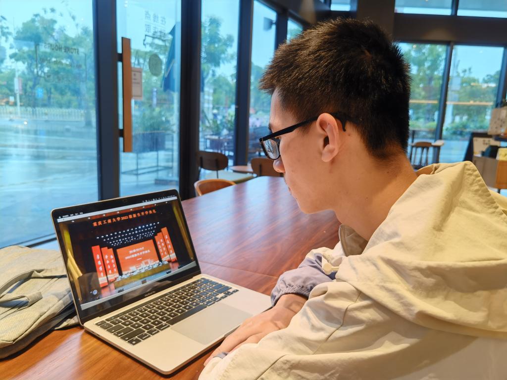 身处于各地的2022级重工商大学子们也通过线上直播的方式进行观礼,感受着和校园的“云相聚”。