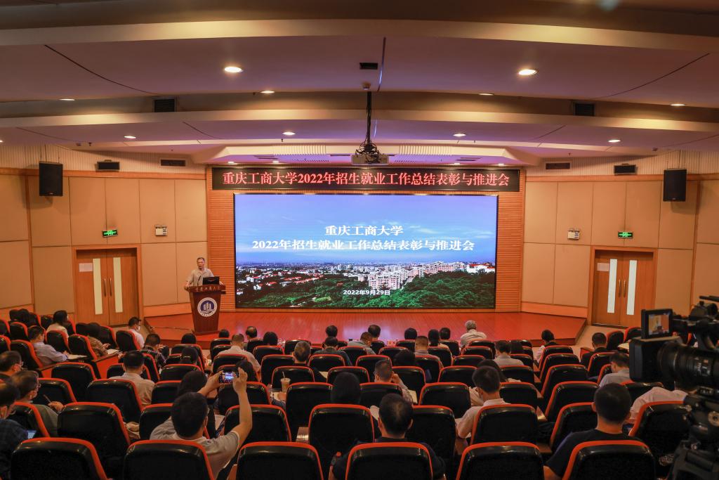招生就业处处长钟增胜就我校2022年招生就业工作进行总结汇报。宋豫宣读了2022届就业工作先进集体和先进个人表彰文件。先进集体代表工商管理学院市场营销与商务策划系系主任郑淞月,环境与资源学院党委副书记、院长王星敏,经济学院党委书记李自维,先进个人代表法学与社会学学院辅导员杨威作了交流发言。