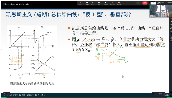 经济学院年轻教师梁甄桥博士抓紧购入无线蓝牙降噪耳机和手写绘画板,并反复修改打磨更适应于线上教学的课件。直播过程中,他打开视频摄像头,增强上课的氛围感;他在教学中使用手写板在课件上清晰地展示授课思路,让学生看得清推导,听得懂讲解。同时,采取授课和研讨的方式加强和学生的互动。