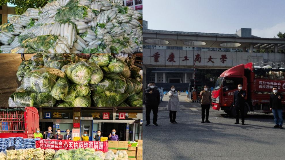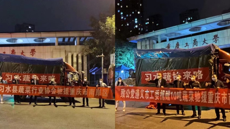 由致公党市委会和致公党南岸区委会积极组织,多方寻找资源,经致公党南岸区委会副主委、致公党学校南岸校区支部主委、文学与新闻学院教师张玉霞与学校党委统战部、国内合作发展处、后勤处多次协调联系,贵州习水县蔬菜行业协会雪中送炭,驰援爱心捐赠的一批蔬菜已于11月26日晚抵达兰花湖校区,又一次缓解了学校食堂供给压力。张主委激动地说:“蔬菜终于送到了,我为自己能给学校抗疫出了点力、尽了点责而感到非常开心!”
