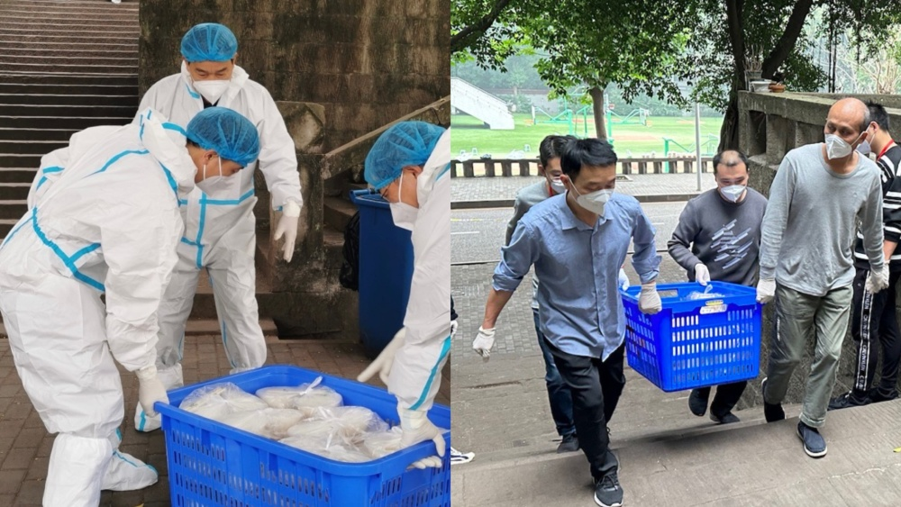 杨光祥正在为封控楼栋南8学生送餐