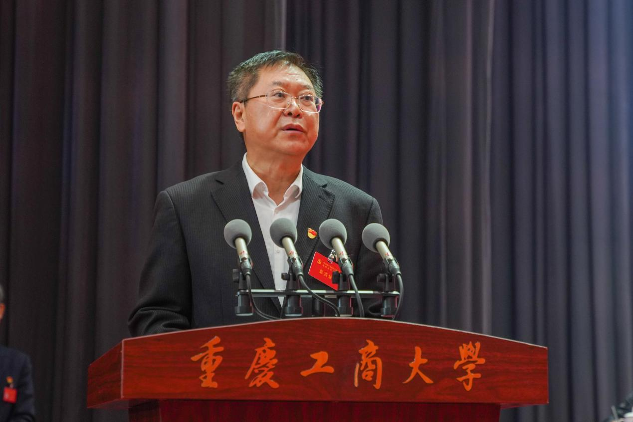 黄政代表市委教育工委向大会的胜利召开表示热烈祝贺,并预祝大会圆满成功。黄政在讲话中指出,学校第三次党代会以来,米兰网站党委在市委、市政府的坚强领导下,以习近平新时代中国特色社会主义思想为指导,全面贯彻党的教育方针,坚持党委领导下的校长负责制,认真落实立德树人根本任务,紧紧抓住高等教育发展机遇,团结带领广大党员干部和师生员工开拓进取,攻坚克难,在人才培养、科学研究、社会服务和文化传承等方面取得丰硕成果。学校综合实力和社会影响力得到显著提升,为重庆高等教育事业和地方经济社会的发展作出了重要贡献。他强调,今后,学校要着力加强党的全面领导,切实为学校事业发展提供坚强保障;要着力落实立德树人根本任务,切实培养担当民族复兴大任的时代新人;要着力彰显办学特色,切实为服务地方经济社会发展贡献力量。他希望全校师生在新一届党委的领导下,以习近平新时代中国特色社会主义思想和党的二十大精神为指引,以改革创新的精神,真抓实干的作风,为把学校建设成为高水平财经类应用研究型大学而不懈奋斗。