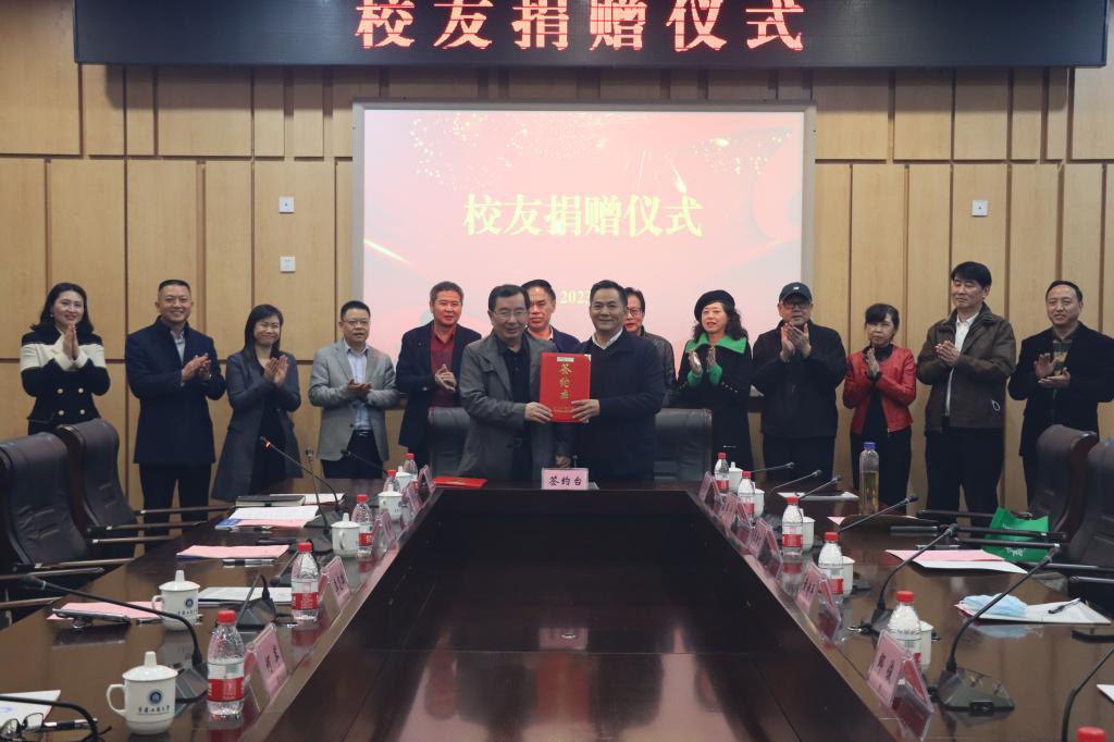 3月30日,校友捐赠仪式在图书馆第五会议室举行。党委书记李志雄、副校长赵骅、基金会理事长何军,79级医学专业黄诗平校友,79级生物专业邹俊、张渝文校友,83级生物专业李宁、殷学珍校友、84级体育专业陈幼愚、项宏志校友出席捐赠仪式。仪式由国内合作发展处处长、基金会秘书长刘代成主持。