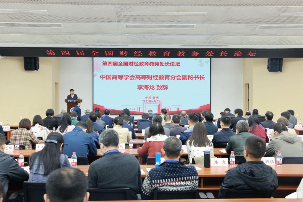 4月7日,由中国高等教育学会高等财经教育分会指导、全国高校财经慕课联盟主办、我校承办的第四届全国财经教育教务处长论坛在我校顺利举行。来自全国46所财经类高校的校领导、教务处长共计100余人参加论坛,共商新文科建设。论坛的主题为“深化新财经教育教学改革,推动财经教育高质量发展”。