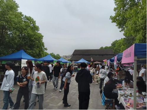 活动现场热闹非凡,有动物元素的文创产品、文采飞扬的书法作品、奇趣混搭的手工艺品、设计感十足的挂件、可爱生动的石膏娃娃……同学们将一个个新奇的想法变成了一件件饱含创意的作品。摊位围墙两边排开,各个摊位风格不一,展出的物件更是琳琅满目,来往的老师们、同学们走走停停,挑选着自己中意的产品。现场的一系列作品展示和互动体验,让参与活动的师生进一步体会到创意市集的魅力。