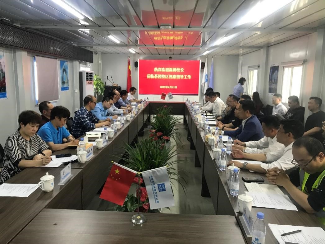 4月12日下午,校长温涛率队到茶园校区工地调研新校区建设推进情况。党政办、新校区建设指挥部办公室、基建处、财务处、审计处、资产处、采招中心部门负责人陪同调研。代建、全过程咨询、跟踪审计、施工等相关单位负责人参加了座谈交流。