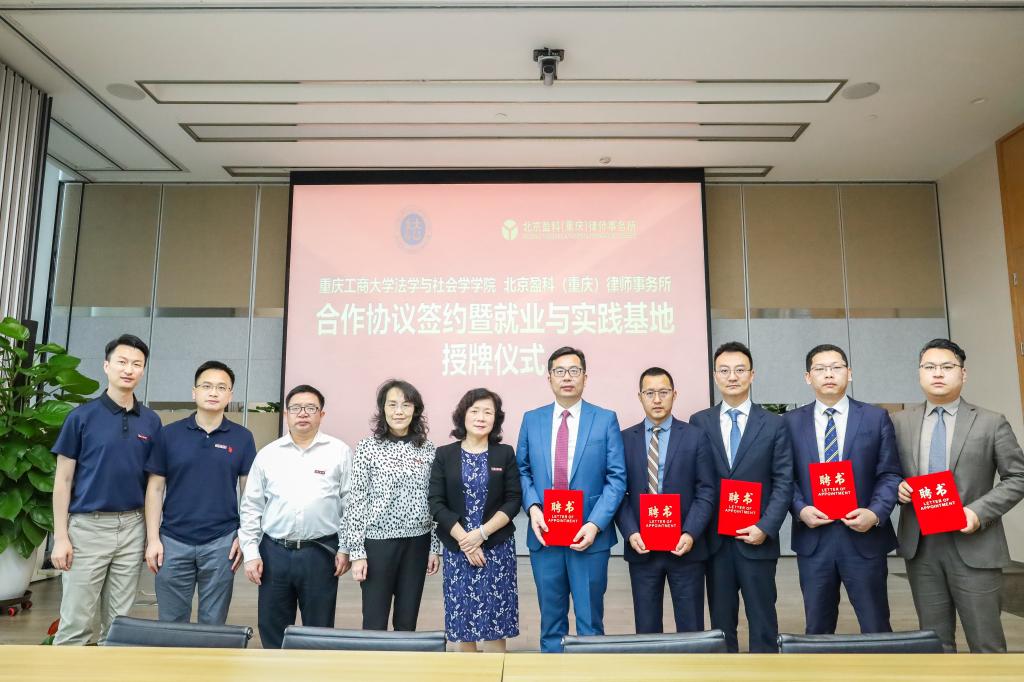 接着,黄文与盈科(重庆)党委书记崔建芳分别代表学院、律所签署了合作协议。在双方人员的共同见证下,举行了米兰网站法学与社会学学院在盈科(重庆)的就业与实践基地、党建共建基地授牌仪式。随后,宋豫为崔建芳、高定重、张建磊、李峰、高才智等律师颁发事业导师、实务导师聘书。签约授牌仪式结束后,与会人员就合作相关事宜展开了广泛沟通和深度交流,并就合作意向达成初步共识。
