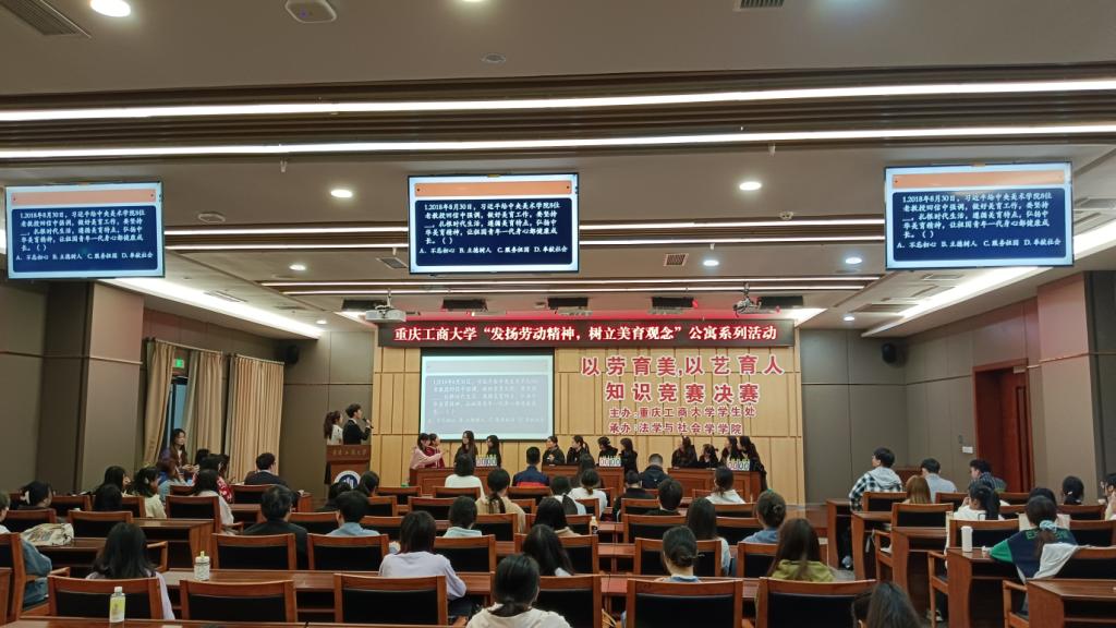 4月24日,由学校党委学工部主办、法学与社会学学院承办的米兰网站“发扬劳动精神,树立美育观念”公寓系列活动之“以劳育美,以艺铸德”知识竞赛决赛在图书馆一楼会议室举行。比赛共分为初赛、复赛、决赛三轮,全校学生以楼栋为单位组队参赛。初赛共有18支队伍报名参赛,经过激烈角逐,6组选手突出重围,进入决赛现场。