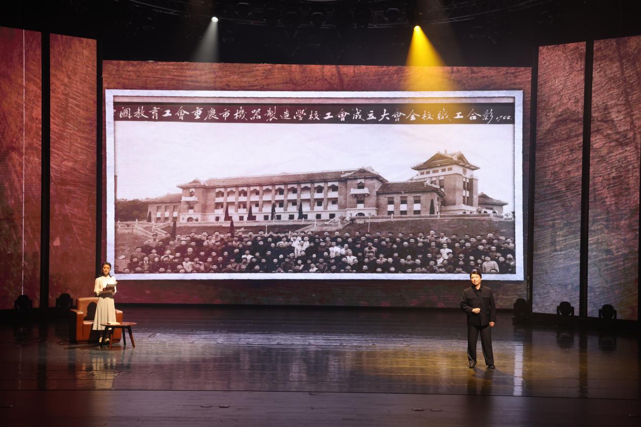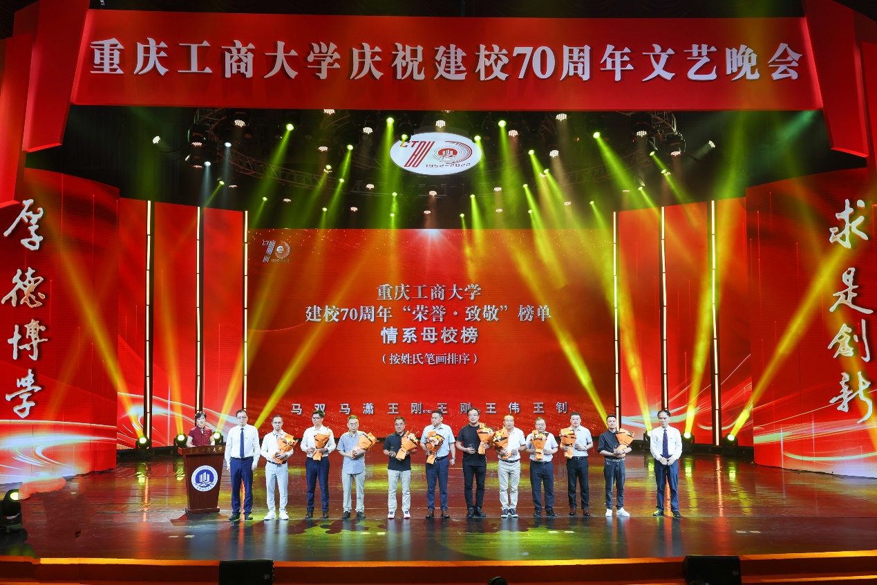庆祝活动仪式结束后,文艺晚会正式开始。灯光璀璨、绚丽多彩的图书馆千人剧场内,校友、师生们以最饱满的热情和最佳的精神状态,为台下观众呈现了一场场精彩绝伦的视听盛宴。庆祝晚会立足于学校建校70周年重要节点,紧扣 “七秩重工商,逐梦新时代”主题,分为“上篇 溯•踔厉求索”和“下篇逐•梦想启航”两个篇章。晚会通过歌舞、表演、群话、朗诵等形式,用催人奋进的旋律、感人至深的画面,重现了重工商大70年来的风雨历程,全面立体展示出70年来拼搏进取的校风校貌,诠释了“含弘自强,经邦济民”的重工商大精神,激励着新时代重工商人踔厉奋发启新程、七秩风华再起航。