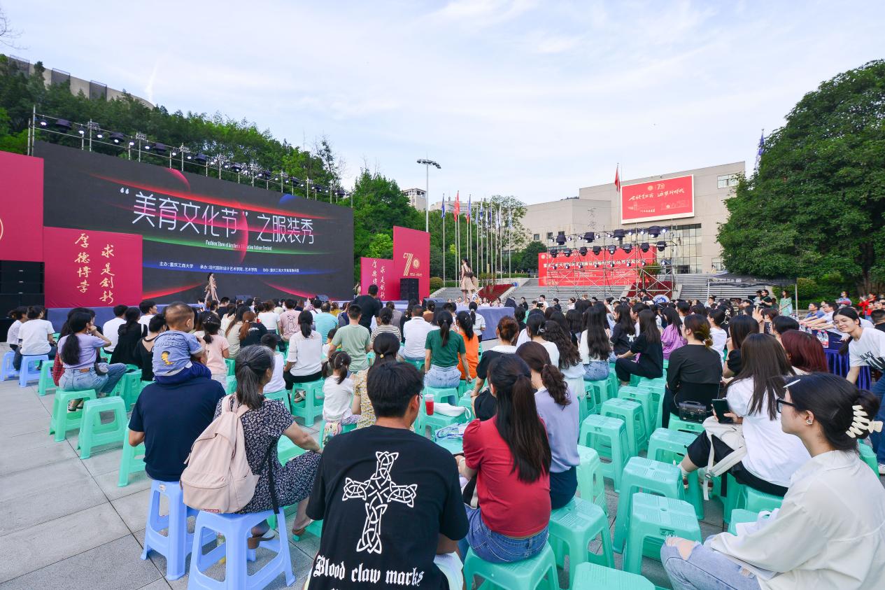 据悉,为了让更多师生、校友、离退休教职工和社会友人都能欣赏到精彩的文艺演出,学校于当天下午和晚上安排了两个场次的演出。晚上的演出在含弘广场设立分会场,同步播放剧场内演出。演出前,艺术学院、现代国际设计艺术学院师生在分会场表演了一场精彩的服装秀。同时,文艺演出在华龙网、新重庆、新华社现场云、央视频移动网等网络平台同步直播。