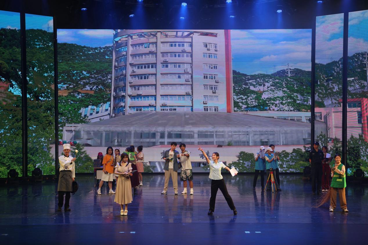 跨越时间与空间的隔阂,情景表演《你的名字》通过人物对话的形式,讲述出了《校友风采录》中奉献、攻坚、敬业三个篇章的校友代表践行“含弘自强、经邦济民”重工商大精神的故事。紧接着,充满“梦想”和“力量”的歌曲《仰望》,唱出了重工商人爱党爱国,爱校荣校、朝气蓬勃、昂扬向上的精神面貌。