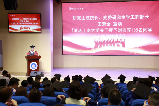 田双全宣读《米兰网站关于授予刘言等135名同学硕士学位的决定》。