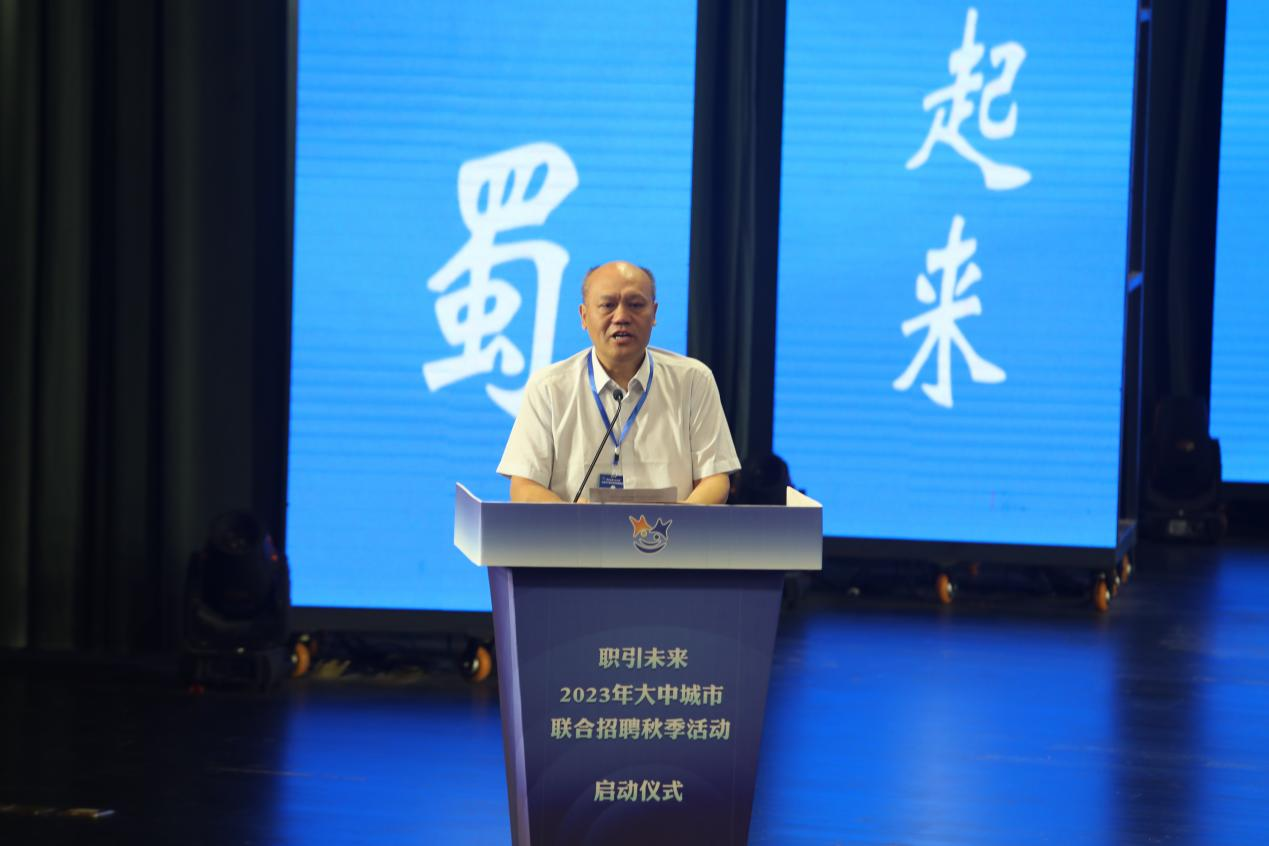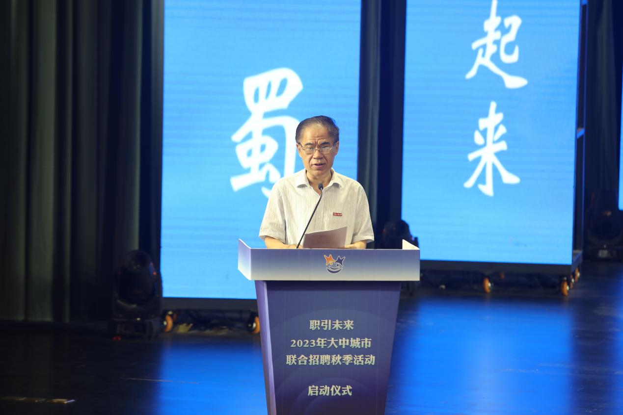 李志雄致欢迎辞。他从学校办学历史、学科结构、专业特色、就业工作等方面向参会领导和嘉宾介绍了学校基本情况。刘晓博介绍了四川省就业工作开展情况。金玲宣读了《关于设立第一批重庆市普通高校就业创业服务工作站的通知》,第一批共设10个就业创业工作服务站,我校作为首批设立的服务站点,服务南岸片区9所高校。黎勇介绍了重庆市就业工作开展情况。杨刚基讲话并宣布2023年大中城市联合招聘高校毕业生秋季活动正式启动。启动仪式现场,杭州赛琪心理咨询有限公司总经理、紫薇花心理咨询(上海)有限公司联合创始人杨娟作为就业指导专家,以“从择业到志业——用长期价值点亮职场道路”为主题,对高校毕业生开展授课辅导,共500余名同学参加。