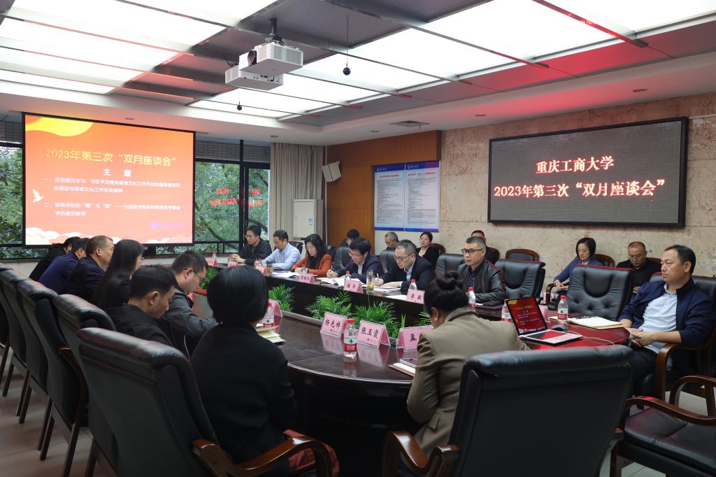 10月26日上午,我校在厚德楼3019会议室召开统一战线2023年第三次“双月座谈会”。本次双月座谈会的主题是:审核评估的“精”与“微”——为迎接学校本科教育教学审核评估建言献策。学校党委书记曾维伦,校长温涛,党委副书记兼统战部部长宋豫,党委常委、副校长李敬;全国政协委员、市区人大代表和政协委员,民主党派中央委员会委员、市委会副主委、区委会副主委、委员;学校各民主党派基层组织、统战团体主要负责人及代表,有关职能部门负责人共30余人参加了会议。会议由宋豫主持。
