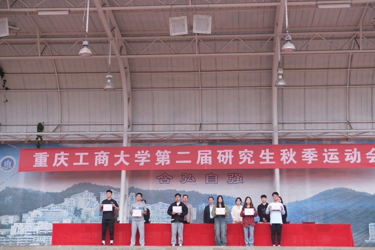 闭幕式上,研究生院副院长邓龙奎、研工部徐阔老师以及研究生会主席团分别为各团体代表颁奖。邓龙奎对所有参与者的支持和付出表示感谢。同时,他还强调了体育运动在锻炼身体、磨炼意志等方面的重要意义。他希望同学们能够将这种积极向上的精神带入到学习和生活中去,为实现更高的人生目标而努力奋斗。
