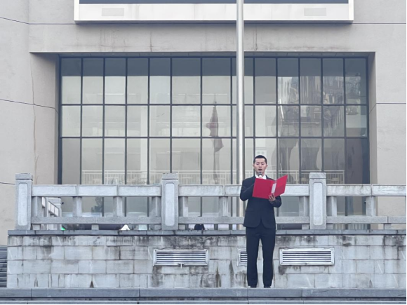 第31届世界大学生运动会志愿者、2022级体育硕士张虎代表学生在国旗下演讲。他倡导同学们牢牢把握时代机遇,担起肩上的责任,以青春之我投身强国之梦,以微微星光,点亮奋斗之路。