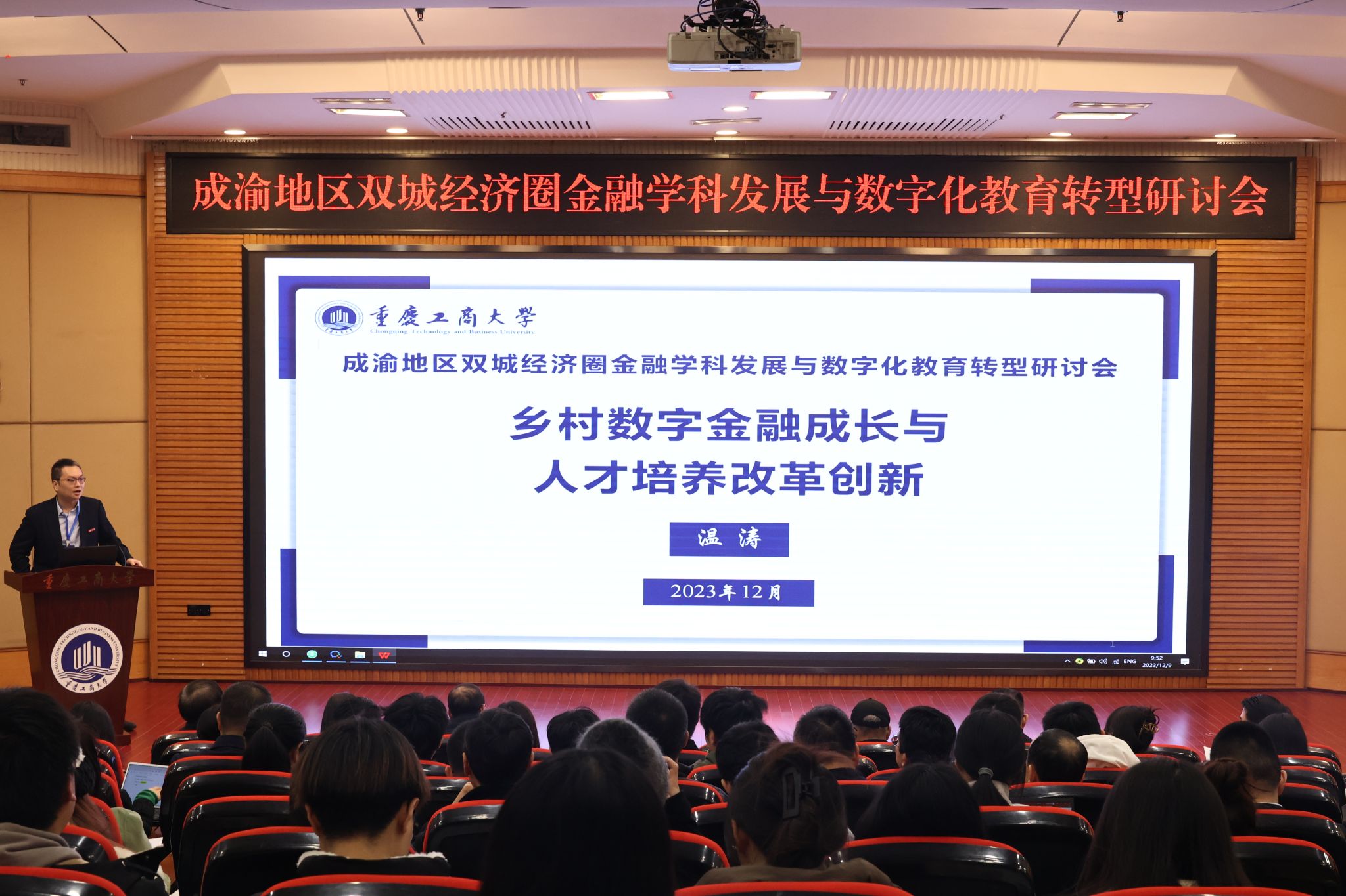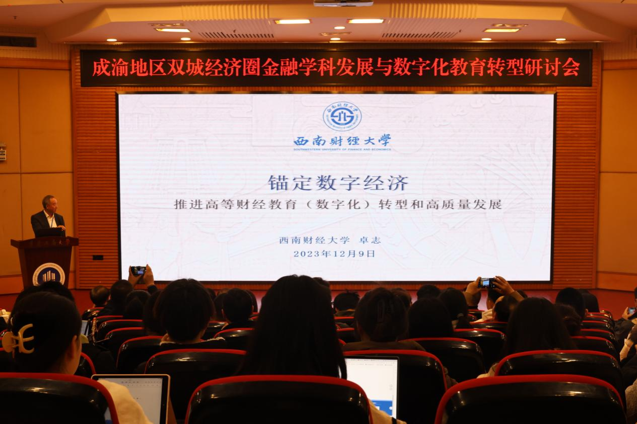 为主动融入和服务成渝地区双城经济圈建设,推动数字赋能高等金融教育,创新人才培养模式,12月8日至10日,四川省金融学类专业教学指导委员会主办,我校金融学院、教育部人文社会科学重点研究基地长江上游经济研究中心、四川省金融学会成渝双城经济圈金融发展暨老龄金融专业委员会承办的首届成渝地区双城经济圈金融学科发展与数字化教育转型研讨会在我校召开。来自成渝地区金融学科学术带头人、中青年学者代表以及业界代表参会。我校校长温涛参加了研讨会并作主旨报告,党委常委、副校长张波参加研讨会并致辞。研讨会由我校党委常委、副校长李敬主持。