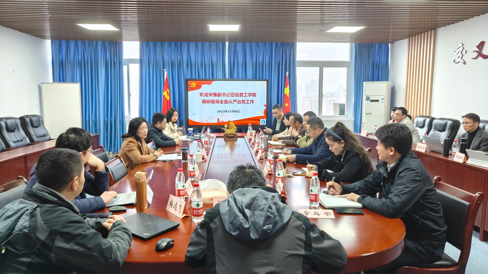 12月8日,学校党委副书记宋豫先后到管理科学与工程学院、法学与社会学学院调研指导全面从严治党工作。