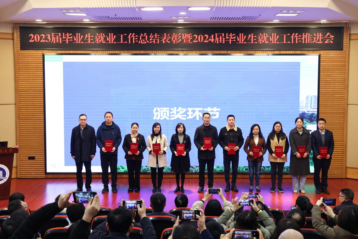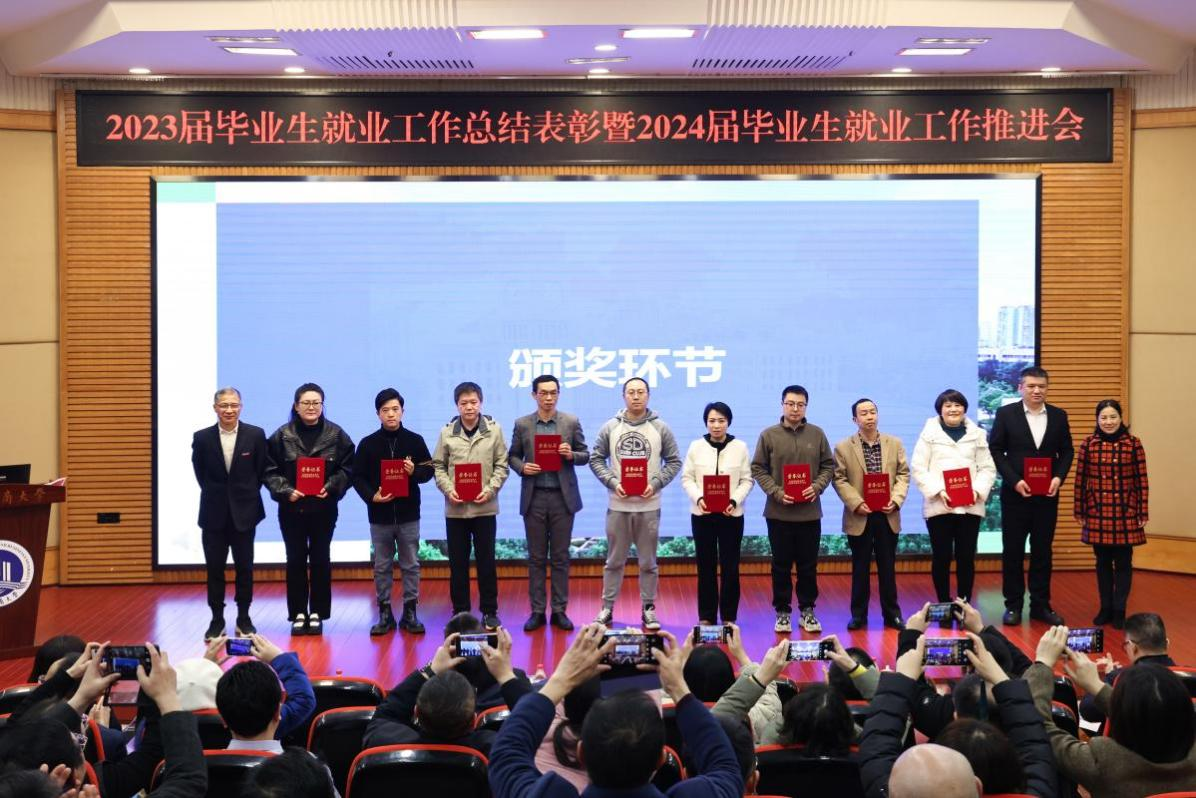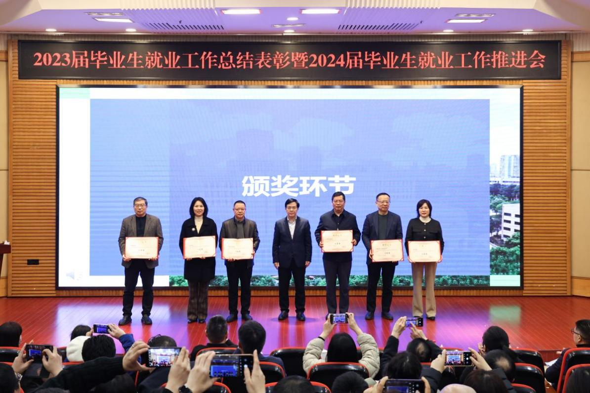 曾维伦在总结讲话中向获奖单位和个人表示祝贺,向过去一年奋战在就业工作战线的教职工们表示衷心感谢。他指出,做好毕业生就业工作,事关千家万户的家庭幸福和社会的稳定。全校上下要深入贯彻落实习近平总书记重要指示批示精神,落实落细党中央、国务院“稳就业”“保就业”决策部署,总结工作、分析形势,全面部署做好2024届毕业生就业工作。对此,他提出三点要求:一是要认清严峻形势,增强紧迫感。要深刻认识党的二十大报告中关于“就业是最基本的民生”的论述。不断增强做好就业工作的紧迫感,早谋划、早部署、早行动,加快推进就业工作进度;二是要抓住主要矛盾,抓实关键环节。要不断推进学科专业设置改革,推动人才供需动态平衡,联动学科专业调整与人才需求,建设适应现代化建设的人才培养体系,从而实现精准服务学生,精准服务企业;三是要创新体制机制,形成工作合力。要加强统筹协调,促进各方面工作有机统一,形成学校党政统一领导,招生就业处牵头协调,各部门协同配合,各学院抓好落实的健全工作体系和良好工作机制,形成强大工作合力,多措并举促进毕业生高质量充分就业。