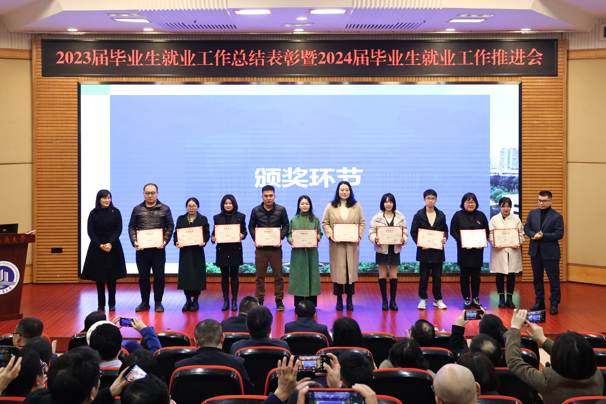 12月14日上午,我校2023届毕业生就业工作总结表彰暨2024届毕业生就业工作推进会在博智楼7200报告厅召开。学校党委书记曾维伦,校长温涛,党委常委、副校长陈运超、柏群、李敬,党委常委、纪委书记、监察专员张海燕,全体中层干部、系主任、就业联络员、毕业班辅导员参加会议。会议由陈运超主持。