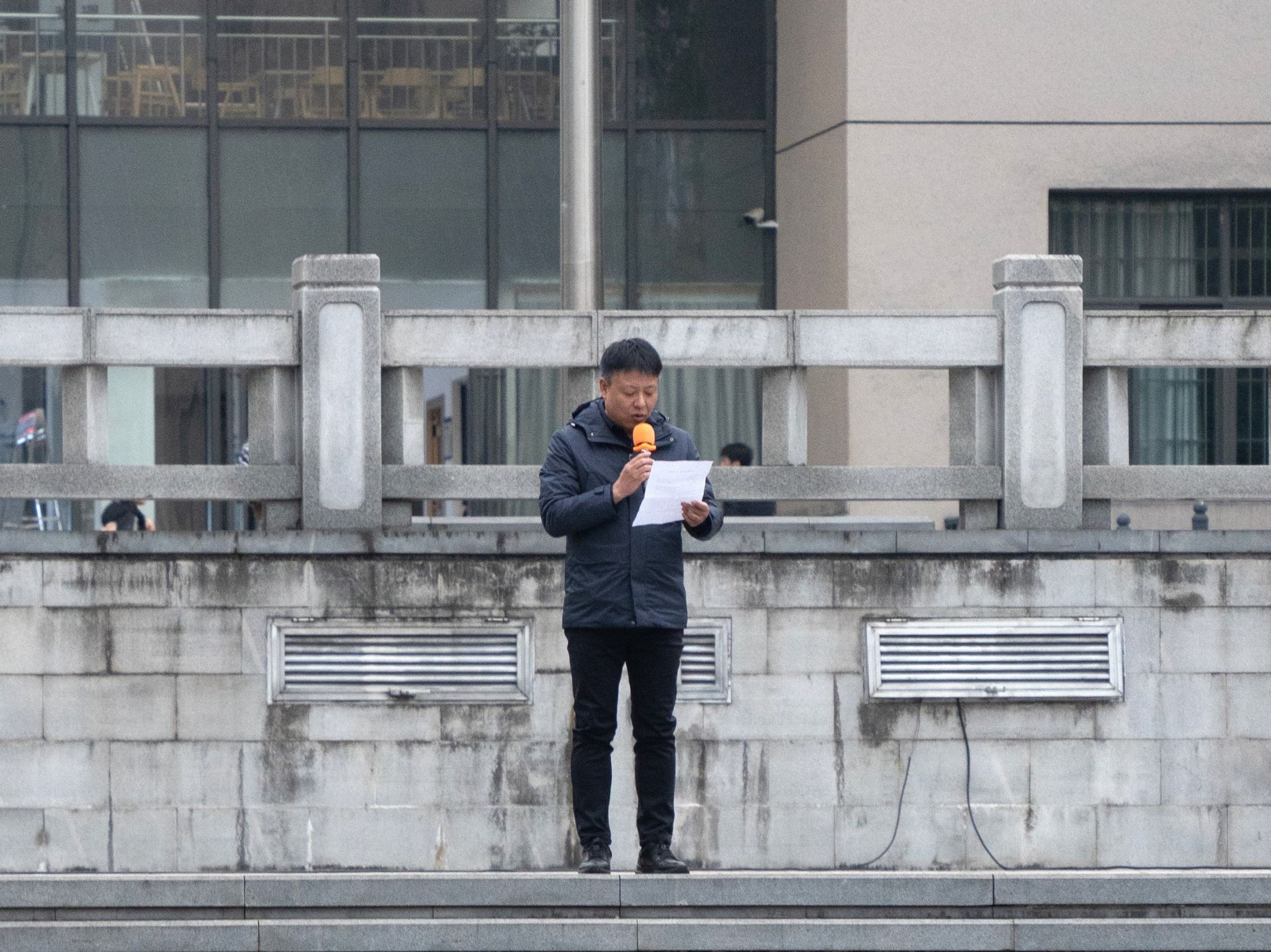 学生代表2021级工商管理专业唐何金成以“奋斗青春,强国有我”为主题作国旗下的演讲。他以“奋斗”为关键词,与大家共勉,在新的一年为了心中的梦想笃行不怠,为了中华民族的伟大复兴拼搏奋斗。2021级市场营销专业的杨清焱同学为大家带来歌曲《发光时代》。
