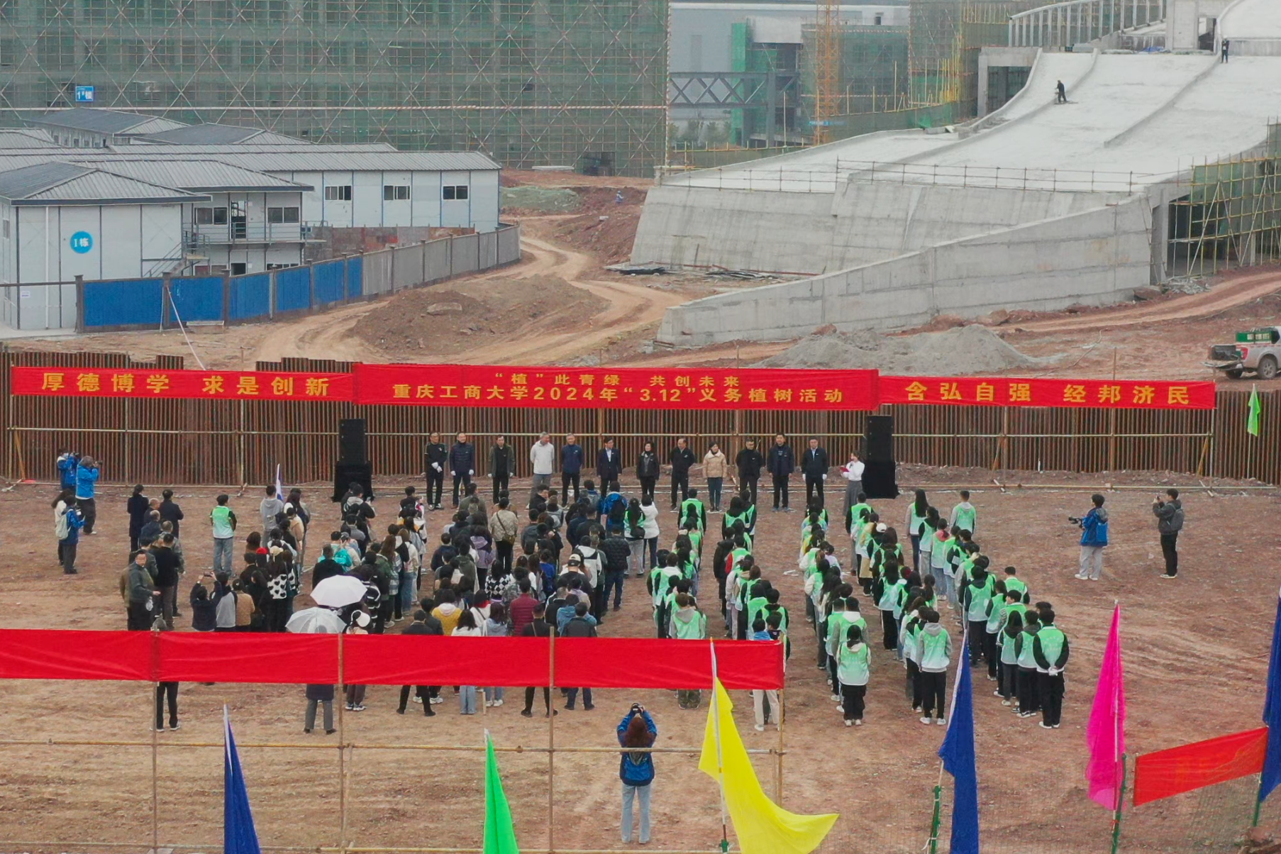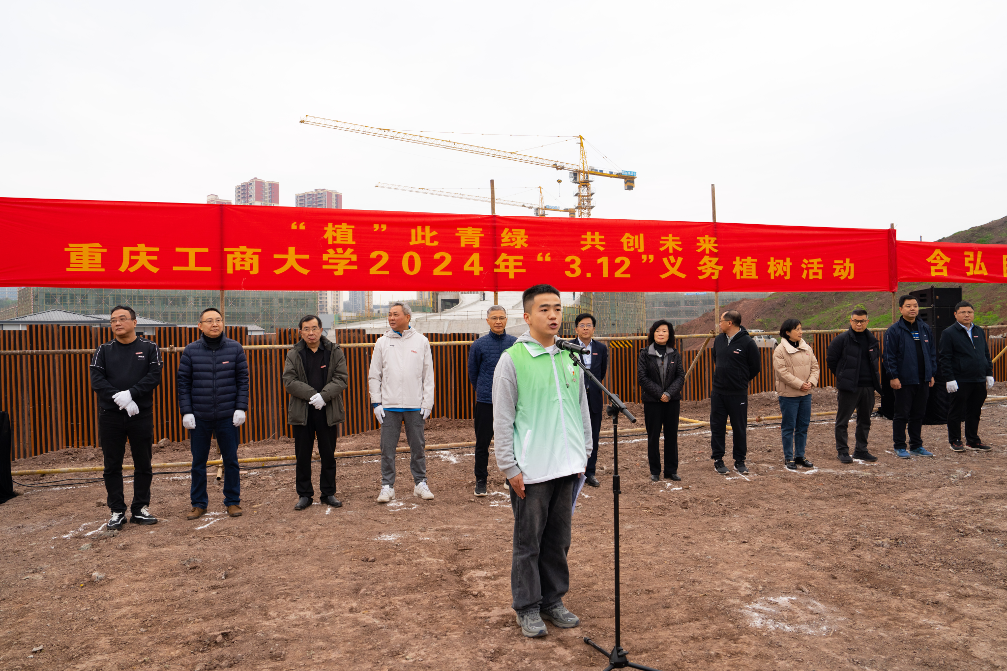 曾维伦在致辞中指出,开展此次活动是学校深入贯彻落实习近平生态文明思想,牢固树立和践行绿水青山就是金山银山发展理念的重要举措。2023年,习近平总书记在参加首都义务植树活动时强调,“当前和今后一个时期,绿色发展是我国发展的重大战略,开展全民义务植树是推进国土绿化、建设美丽中国的生动实践。”十年树木,百年树人。今天,我们在校园种下的绿植不仅寄托着师生、校友对学校的美好祝愿,也是师生、校友与学校最深情的纽带。植树造林功在当代、利在千秋。他号召大家为重庆市建设美丽中国先行区,打造人与自然和谐共生的现代化市域范例贡献重工商大人力量。
