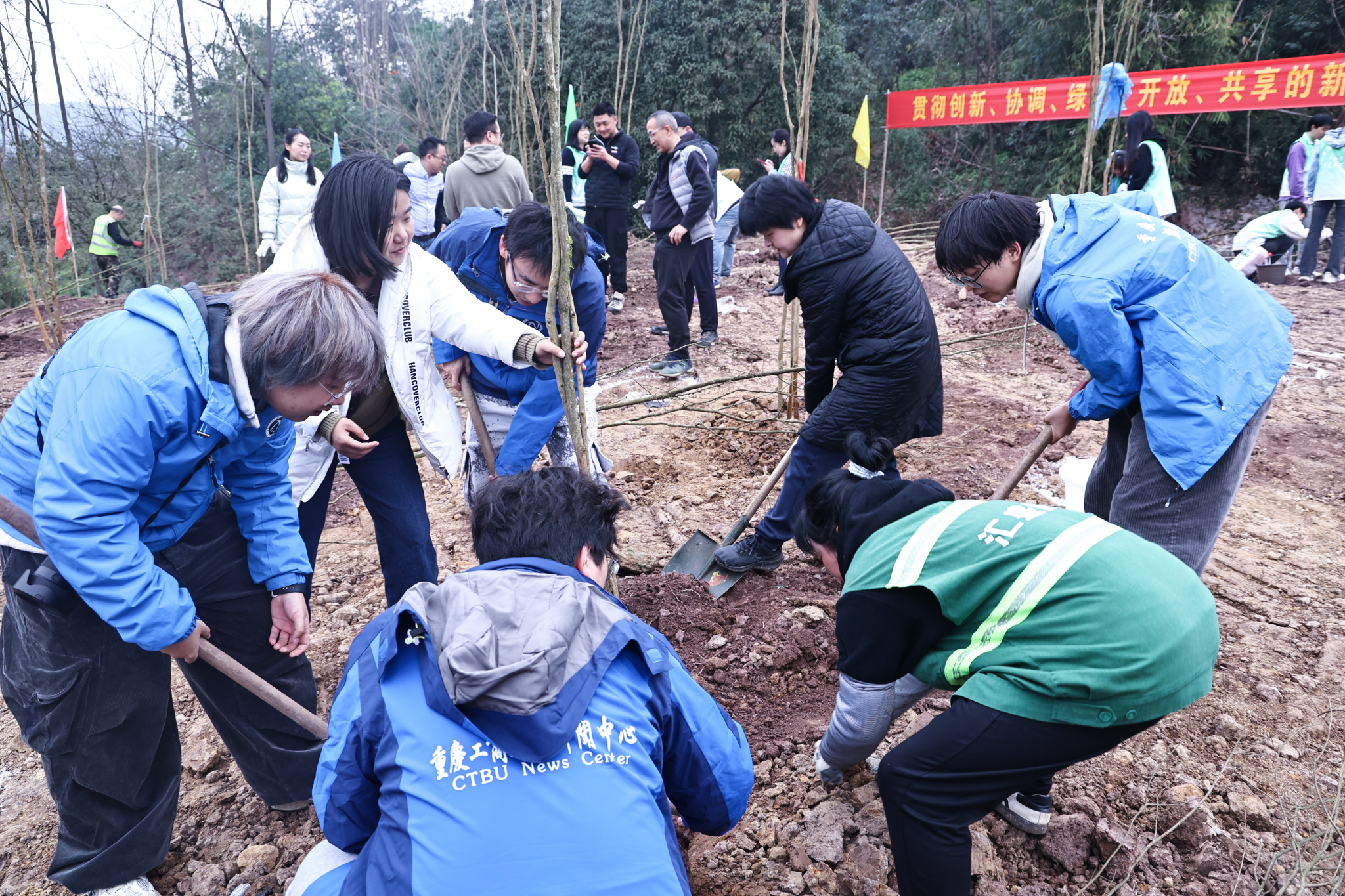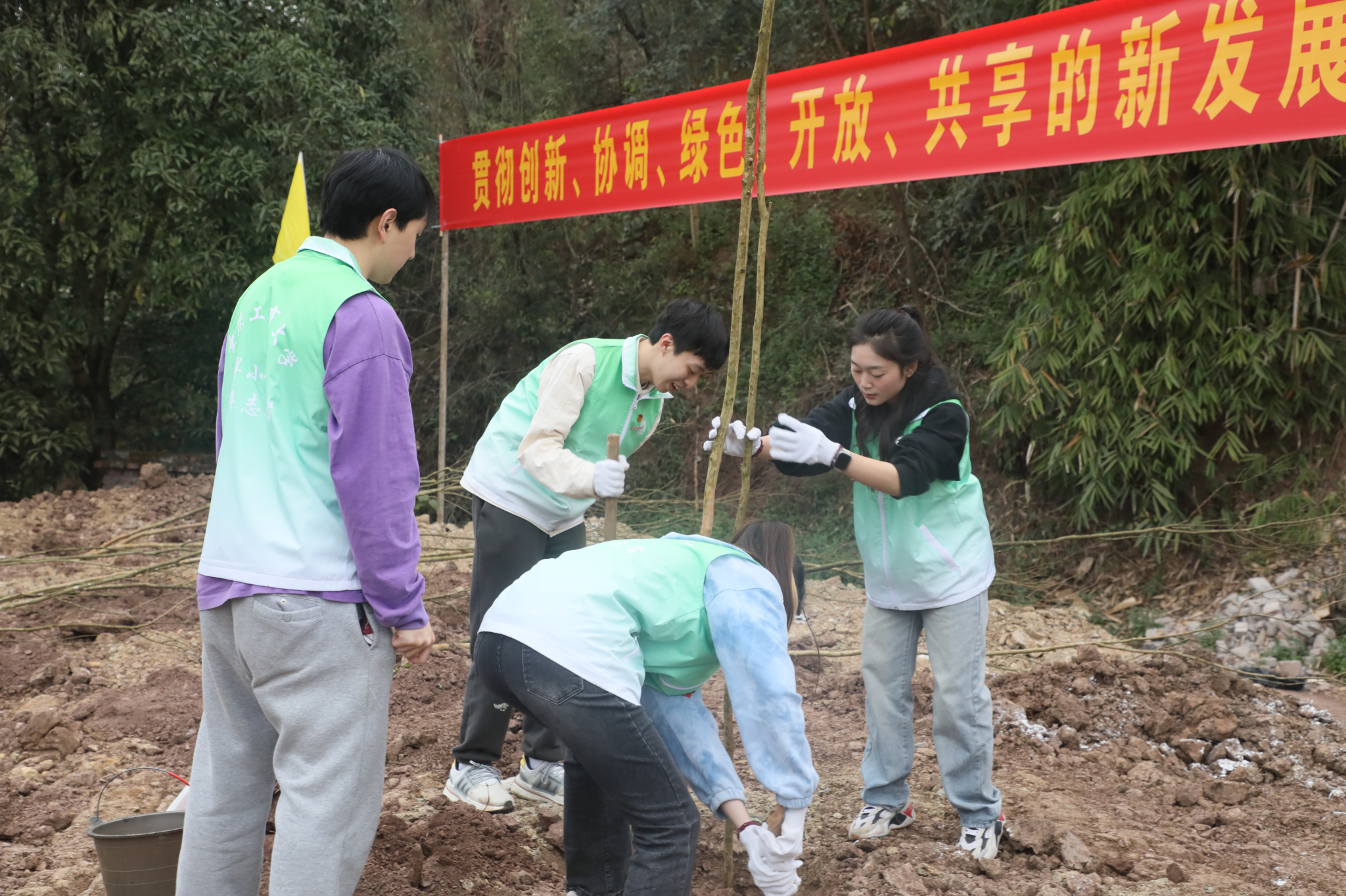 人勤春来早,植绿正当时。为深入贯彻落实习近平生态文明思想,牢固树立和践行绿水青山就是金山银山的理念,3月12日上午,我校在茶园新校区举办“‘植’此青绿,共创未来”师生校友义务植树活动。
