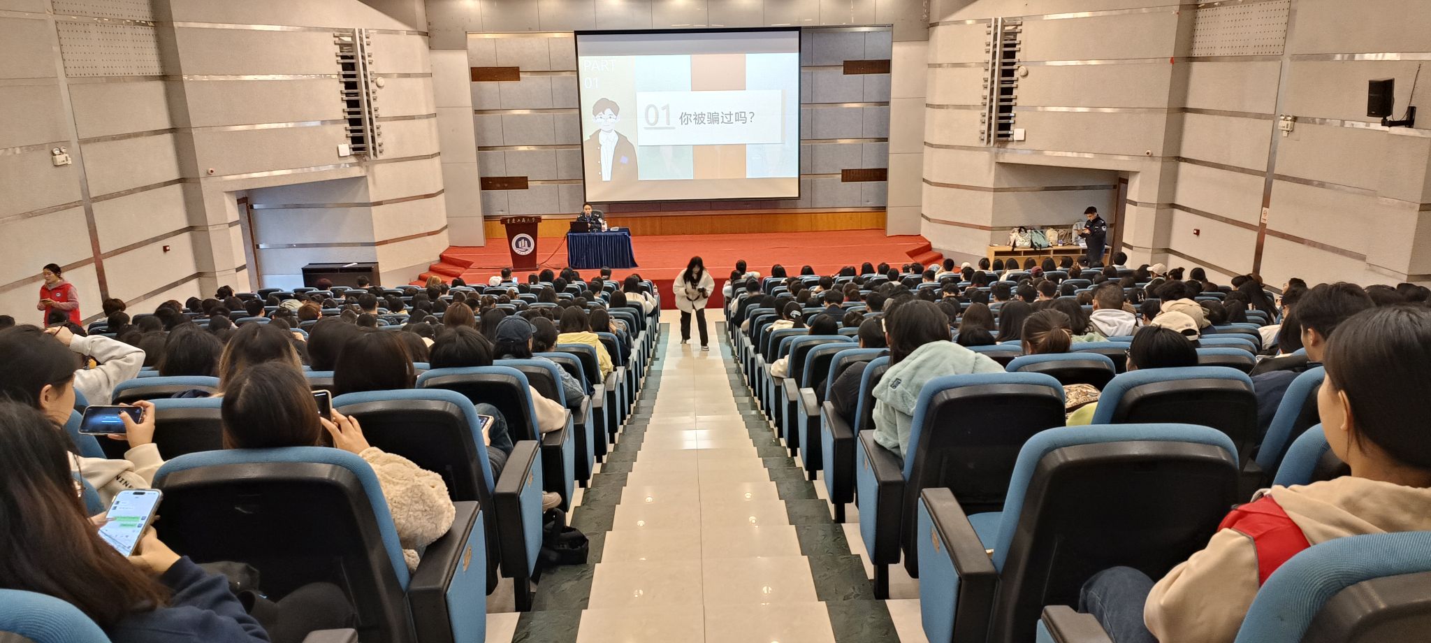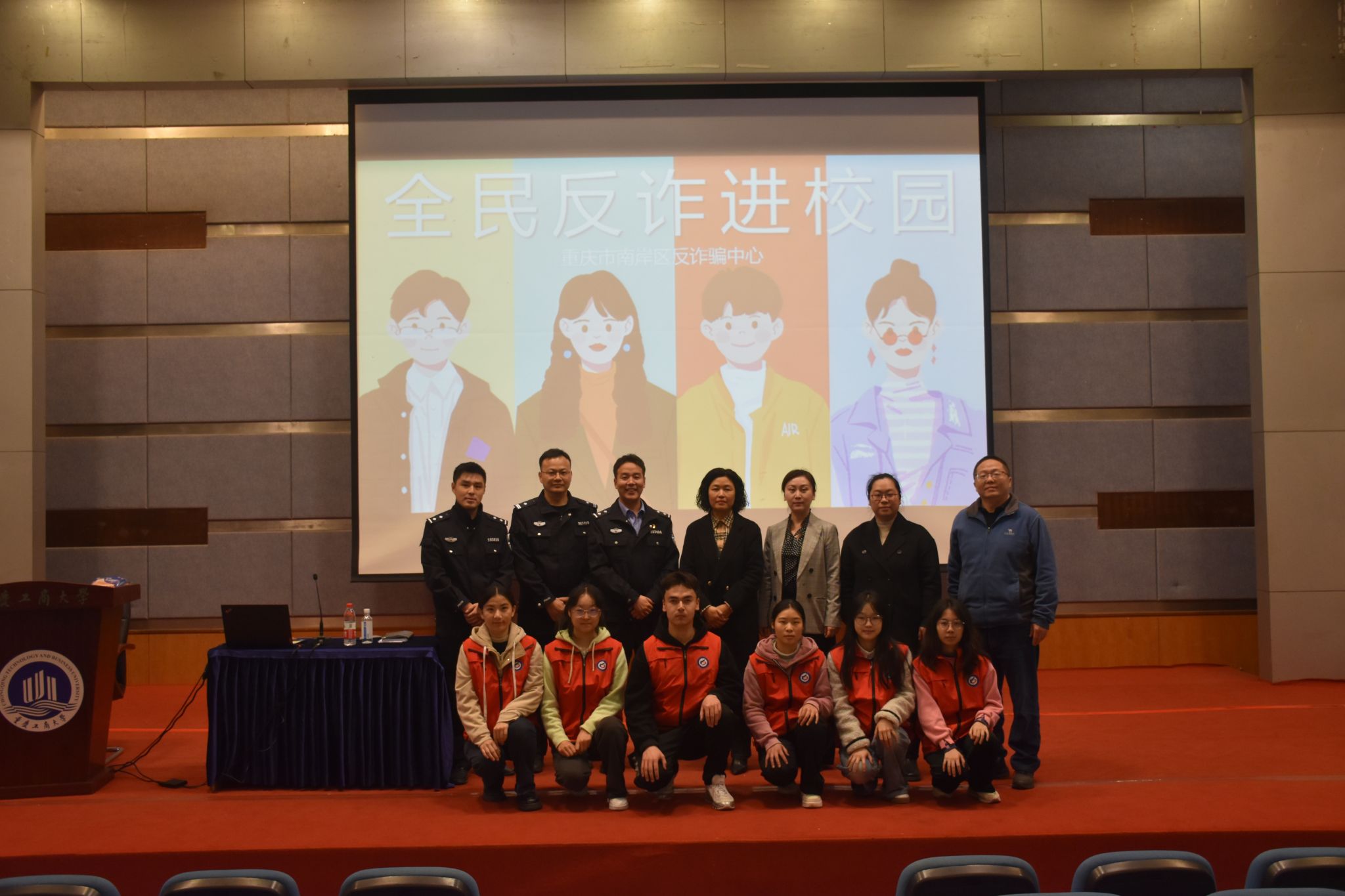 保卫处副处长曹晓丽、学生处副处长林璐、会计学院党委副书记郝颖、南岸区反诈中心幸永祥警官、四公里派出所刘国魁警官一同参加了宣讲活动。