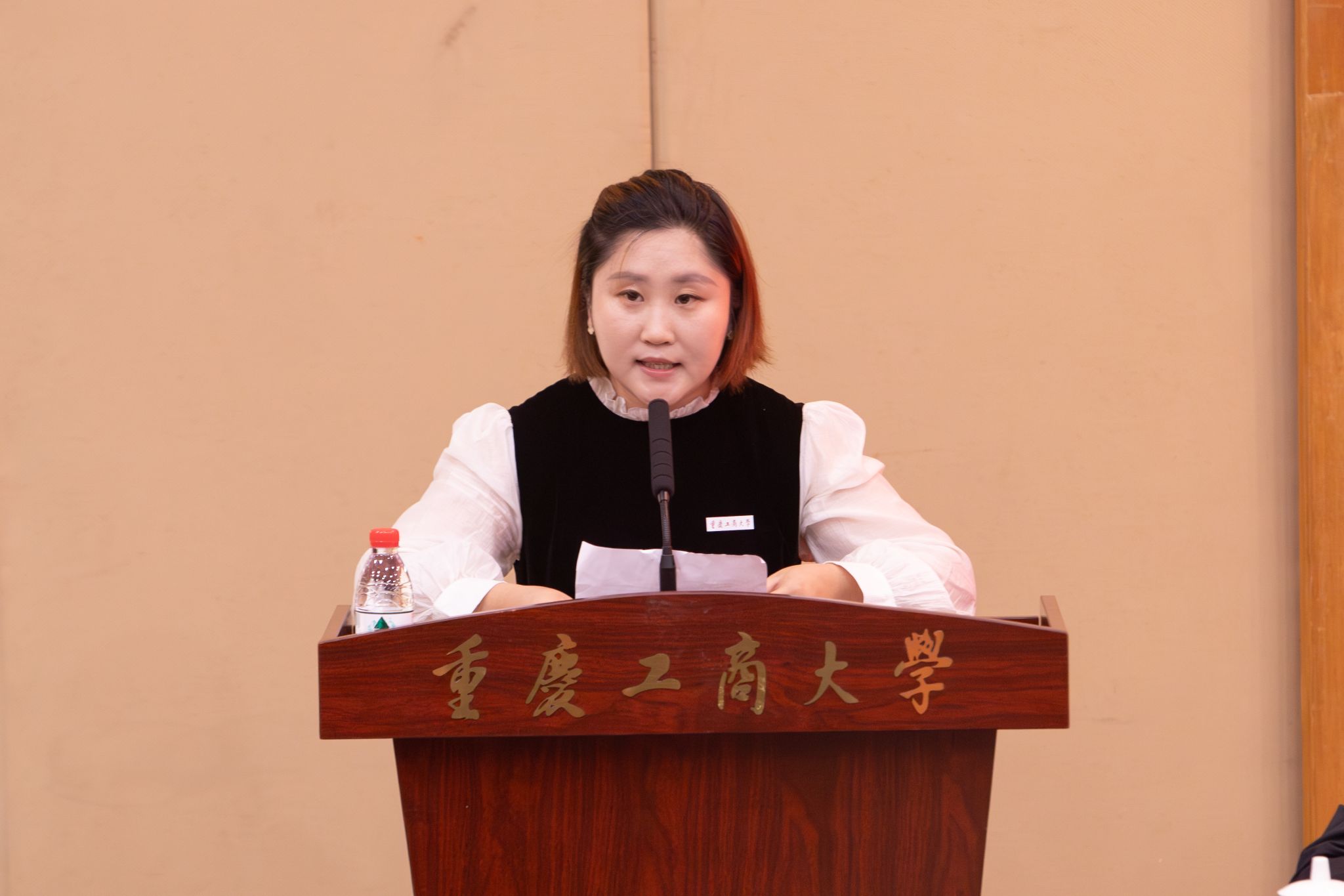 我校成教2005级工商管理专业毕业生、2022年全国五一劳动奖章获得者、2019年全国金融五一劳动奖章获得者、2023金渝奖年度金融人物、农行重庆两江分行营业部高级大堂经理陈希作为校友代表发言。她说母校一直是她最温暖的港湾和最挂念的家园,一直激励着他为金融事业的发展作力所能及的贡献。她勉励全体新同学们在接下来的学习生活中,要珍惜光阴、努力学习、认真工作,在未来的道路上勇敢前行,实现自己的梦想。