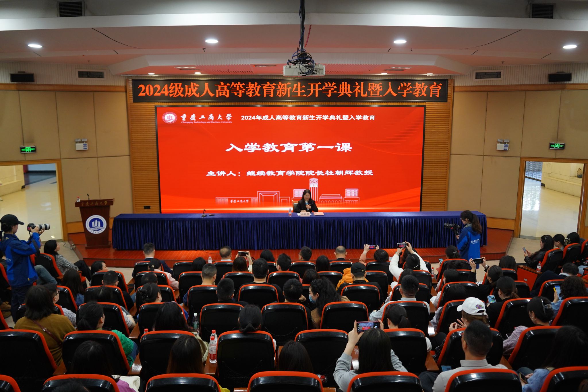 任毅代表学校欢迎成教新同学加入米兰网站大家庭,并简要介绍了学校在人才培养、学科科研、师资力量、社会服务和协同发展等方面取得的优异成绩。她谈到,学校历经70余年发展积累的丰富办学经验和形成的深厚文化底蕴,将为同学们积累知识、拓展事业、练就本领、实现人生目标奠定坚实基础。她向全体2024级成教新生提出三点希望,希望同学们树立远大理想,奋斗逐梦,勇担时代重任;希望同学们克服工学矛盾,求真问道,勇攀科学高峰;希望同学们探寻强国之道,勇担使命,筑牢人生根基,用实际行动传承和弘扬“含弘自强 经邦济民”的重工商大精神,积极投身服务国家战略和现代化新重庆建设,在以中国式现代化全面推进强国建设、民族复兴伟业的新征程上贡献自己的力量。