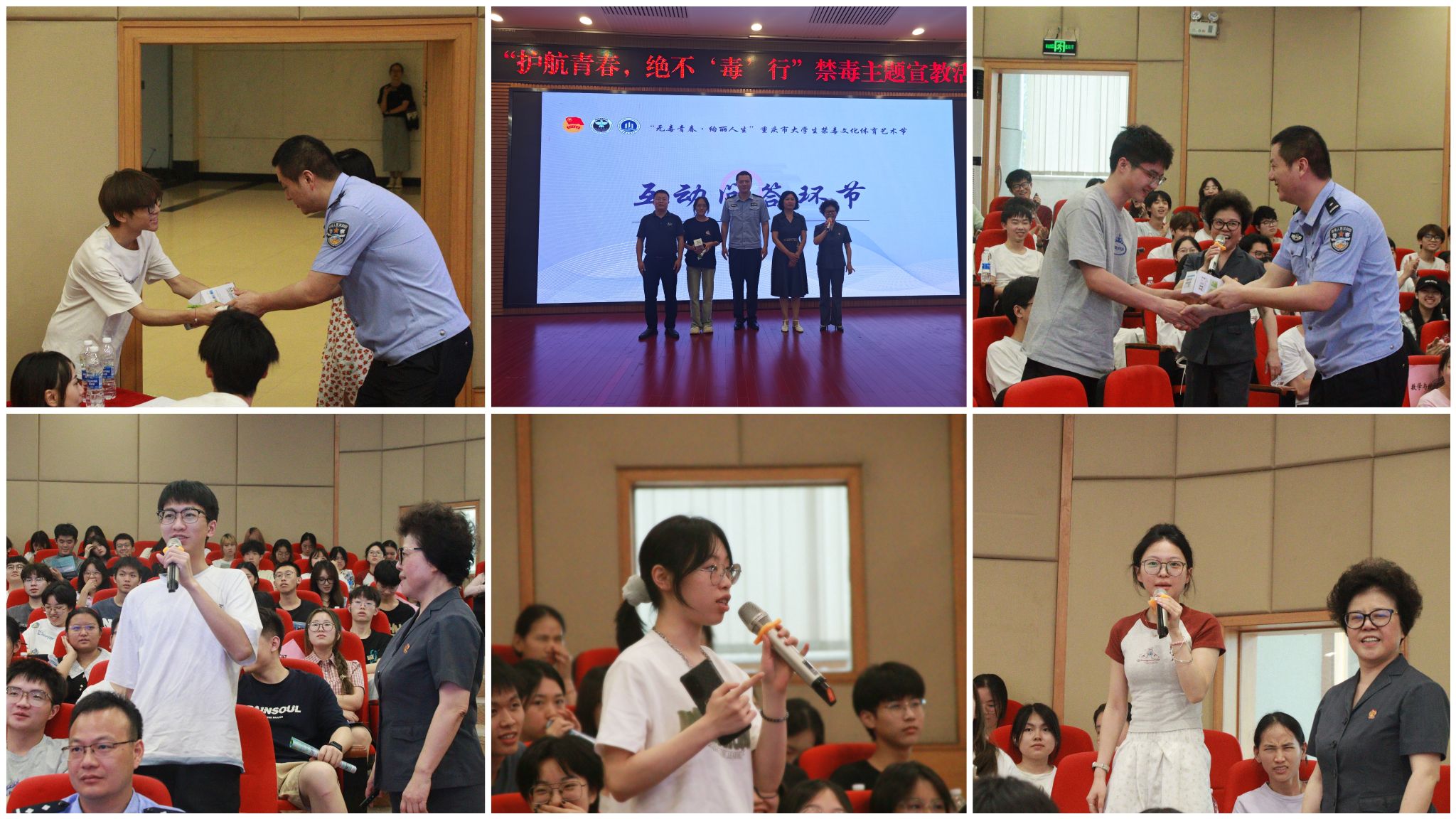 同时,南岸区禁毒办工作人员通过现场讲解、趣味打卡、发放宣传资料等方式引导大学生们更直观地了解新型毒品和精麻药品的种类及危害,教育引导同学们要远离毒品、珍爱生命,增强自我保护意识,树立健康向上的人生观、价值观。