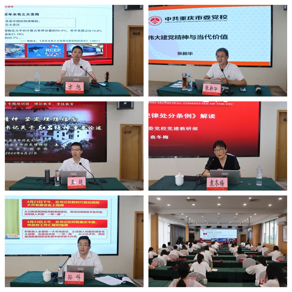 本次培训依托重庆红色教育资源,着重强化理论武装,精心安排、科学设置了《习近平总书记视察重庆重要讲话重要指示精神解读》《伟大建党精神与当代价值》《弘扬红岩精神,坚定理想信念——学习习近平总书记关于红岩精神重要论述》《<中国共产党纪律处分条例>解读》《推进西部陆海新通道建设走深走实》等理论教学课程。教学过程中,全体学员认真聆听专家授课,课后积极分享交流,理想信念得到进一步淬炼,思想政治得到进一步洗礼,理论知识得到进一步夯实,做到了学有所思、学有所悟、学有所获。
