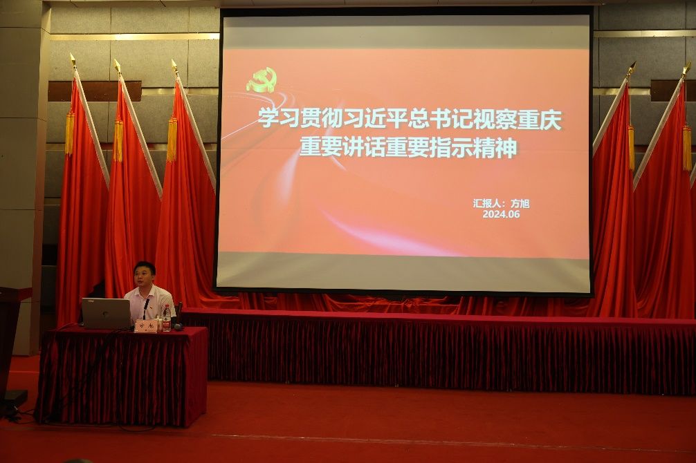 方旭以“学习贯彻习近平总书记视察重庆重要讲话重要指示精神”为题,以宏大的历史视野、深邃的历史眼光,从世界力量对比的横坐标和中华民族前进的纵坐标分析了当今世界大势和我国所处的历史方位。面对百年未有之大变局,他从历史、地理、经济等角度全方位讲授了中国式现代化的壮阔前景以及如何答好重庆答卷,并从习近平总书记视察重庆重要讲话重要指示精神的背景,准确把握习近平总书记视察重庆重要讲话重要指示精神精髓要义,全力推动习近平总书记殷殷嘱托在重庆落地生根、开花结果等三个方面作了解读。讲授内容深入浅出、生动精彩,内涵丰富、脉络清晰,分析透彻,既有深入浅出的理论阐述,又有广征博引的事例分析,为与会者在新的、更深层次上理解把握习近平总书记视察重庆重要讲话重要指示精神,提供了理论和实践指导。