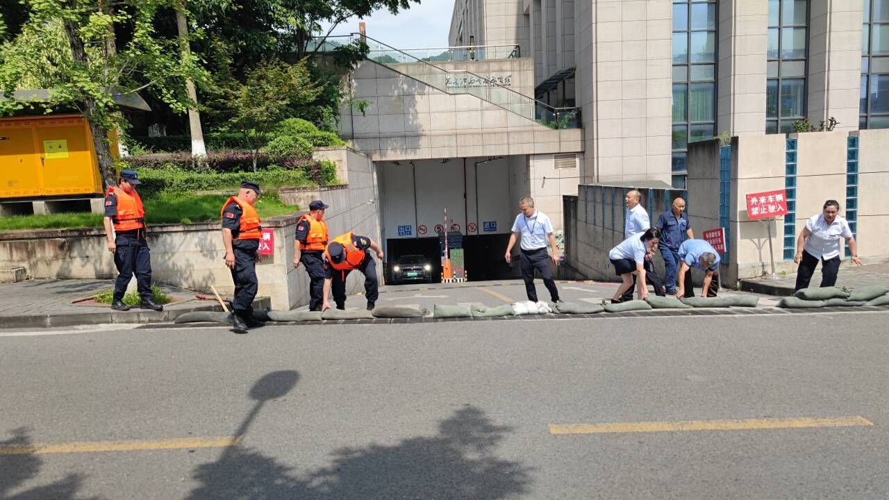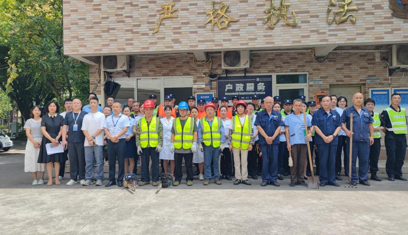 为深入学习贯彻习近平总书记对防汛抗旱和抢险救灾工作作出的重要指示精神,落实市委、市政府毫不松懈抓好主汛期我市防灾减灾救灾各项工作的要求,切实做好“七下八上”防汛关键期学校洪涝灾害防范工作,提高快速反应和应急救援能力,有效应对校园突发洪涝灾害,维护学校安全稳定,7月19日下午,后勤处、保卫处共同组织开展了2024年洪涝灾害应急处置演练。后勤处和保卫处的干部带领葆力物业公司、重庆汇盛园林景观设计工程有限公司、校园安保服务大队相关人员参加了此次演练。