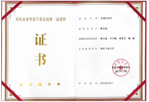 学院《宏观经济学》获评重庆市来华留学英语授课一流课程