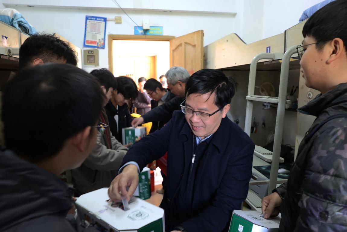12月31 日下午,学校党委书记曾维伦,党委常委、副校长李国军带领党政办、党委学工部、校团委及相关学院负责人,先后前往南岸校区、兰花湖片区和江北校区看望慰问部分家庭经济困难学生,并送去慰问品和慰问金,在新年来临之际为同学们送上学校的关怀和祝福。