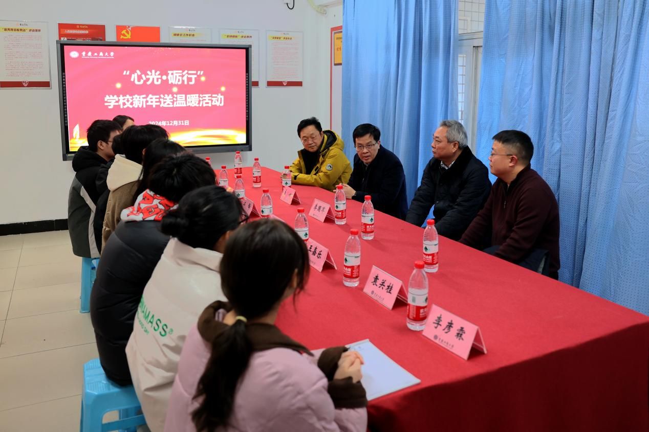 曾维伦、李国军一行来到同学们中间,与他们亲切交流,并祝大家新年快乐。在交谈过程中,校领导详细询问同学们的学习生活情况、假期安排等。在场学生分享了自己在大学期间的收获和成长。曾维伦表示,学校是一个温暖的大家庭。一直以来,学校都开展送温暖活动,走访慰问学生,关心关爱学生学习生活,充分体现学校党委对同学们的关怀和慰问。校领导鼓励大家一定要努力学习,争取在期末考试中取得好成绩;在大学期间要提升专业技能、提高自身素质,勇于克服困难、乐观面对生活,在新的一年再接再厉取得更大进步。一句句饱含真情的话语,一声声传递祝福的问候,一份份温暖如家的关怀,让在场学生感受到浓浓的暖意。