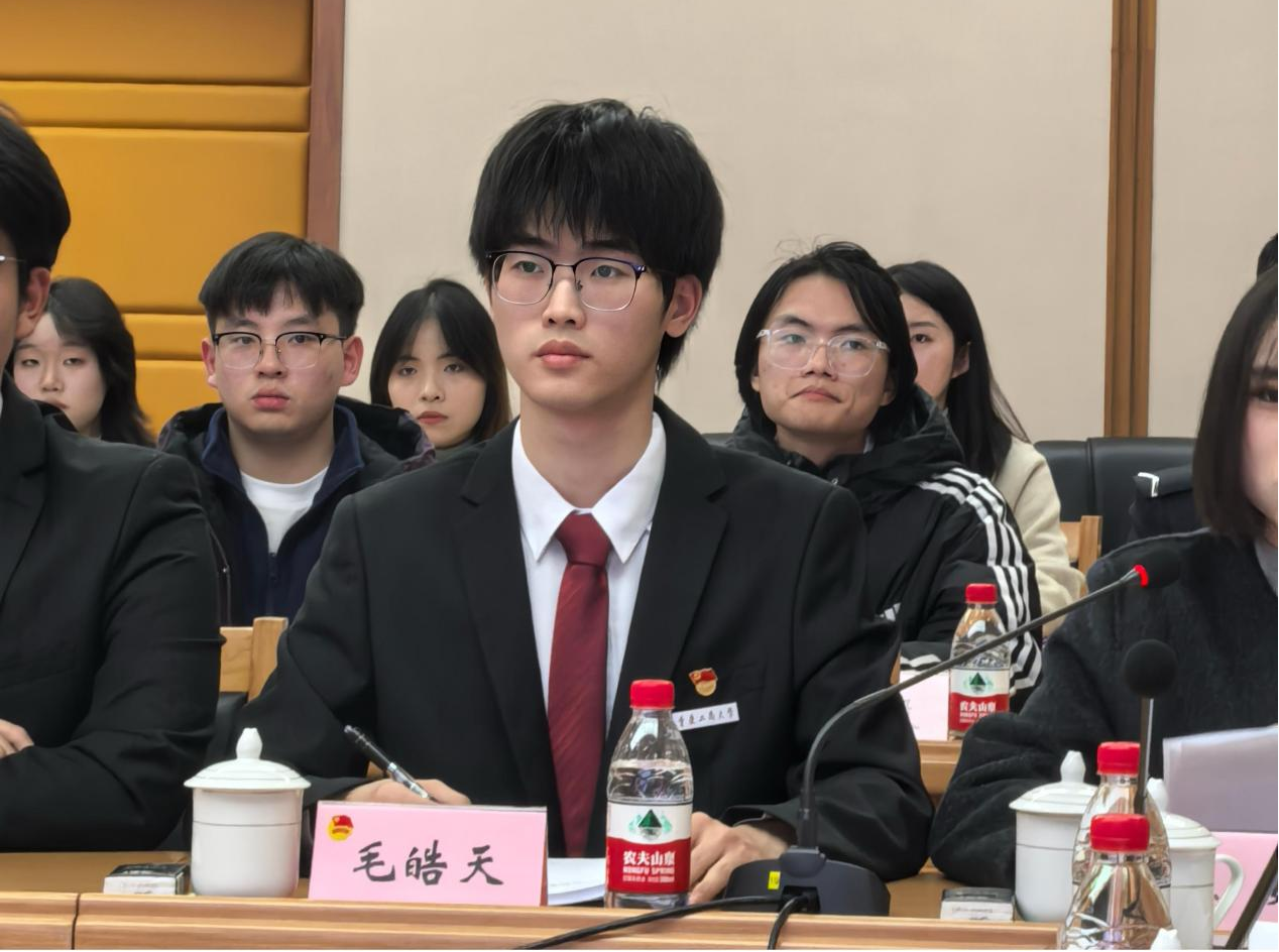 2025年1月2日,重庆市“共青团与人大代表、政协委员面对面”活动上,我校金融学院毛皓天同学作为获得优秀提案奖的学生代表在会上作分享交流。