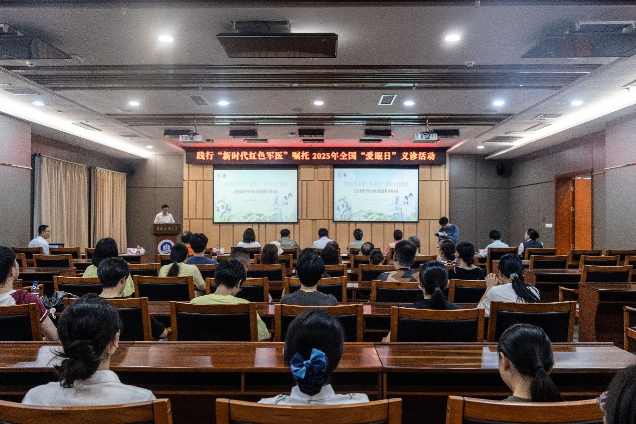 5月21日下午,在第30个全国“爱眼日”即将到来之际,陆军特色医学中心吴强副主任带领该中心眼科医护专家团队应邀来校开展“践行‘新时代红色军医’嘱托,守护青春双眸,点亮未来之光”军地合作主题公益活动。校党委常委、副校长杨柏出席并致辞。
