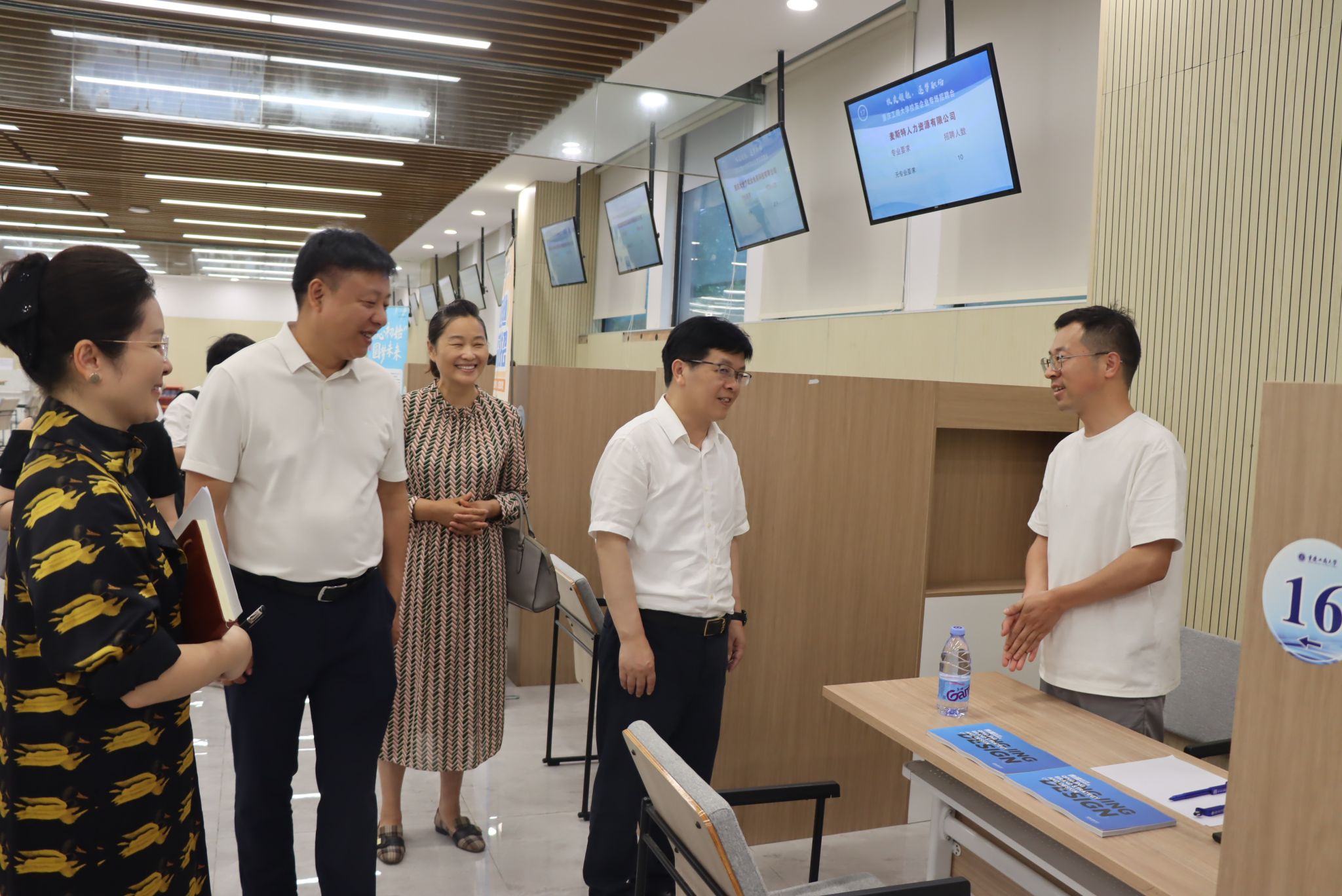 学校党委书记曾维伦,党委常委、副校长杨柏,国内合作发展处处长、校友工作办公室主任郭敏,招生就业处处长钟增胜,招生就业处副处长周婷,校友会副会长何军、王小玲到招聘会现场,分别与重庆康明斯发动机有限责任公司、重庆东原仁知城市运营服务集团、重庆青鲸文化传播有限公司、重庆力动体育用品有限公司等单位的招聘负责人及校友代表进行了深入交流,亲切询问校友职业发展情况,并希望校友企业持续加强与学校的交流合作。企业负责人们纷纷表示,非常感谢母校提供的招聘平台和优质的就业服务,让校友深深感受到了母校的热情与温暖。经济学院、会计学院、工商管理学院、法学与社会学学院、机械工程学院等部分学院的领导和老师也到场指导毕业生求职。