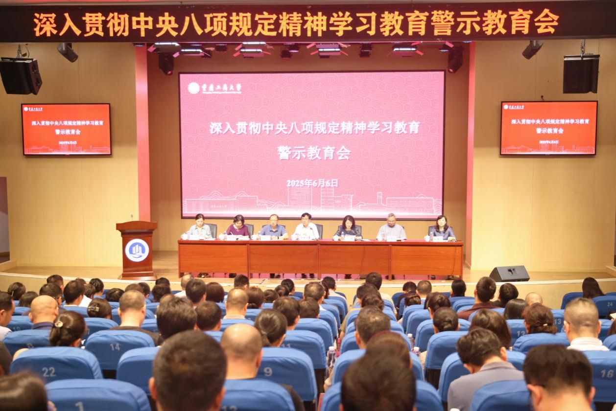 6月6日下午,学校召开深入贯彻中央八项规定精神学习教育警示教育会,学校党委书记曾维伦出席会议并讲话,会议由党委副书记宋豫主持。全体在家校领导、中层领导干部、专职组织员和各职能部门科级干部参加。