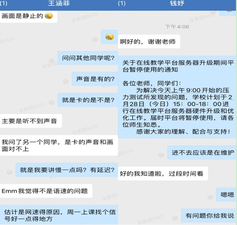对于学生在使用网络进行线上学习中遇到的问题及时反馈,并做出回应。