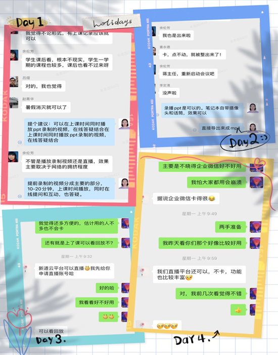 我收到准备网络教学的通知后即通过企业微信建好了教学班,在同学中搜集意见和反馈,以便了解每一位学生的网络情况,并有针对性地解决和做出预案。