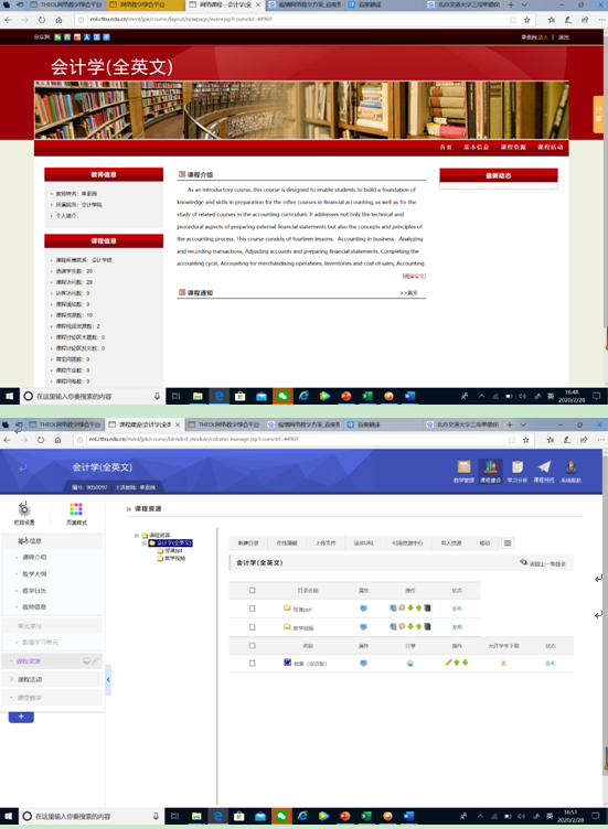 本学期我担任的主要课程是《会计学(全英文)》。《会计学》对于大一的学生本身具备一定难度,采用全英文教学,更是对老师的教学和学生的学习提出了双重挑战。所以,采用网络教学的方式必须经过充分的准备。因此,我从以下方面做了准备工作。