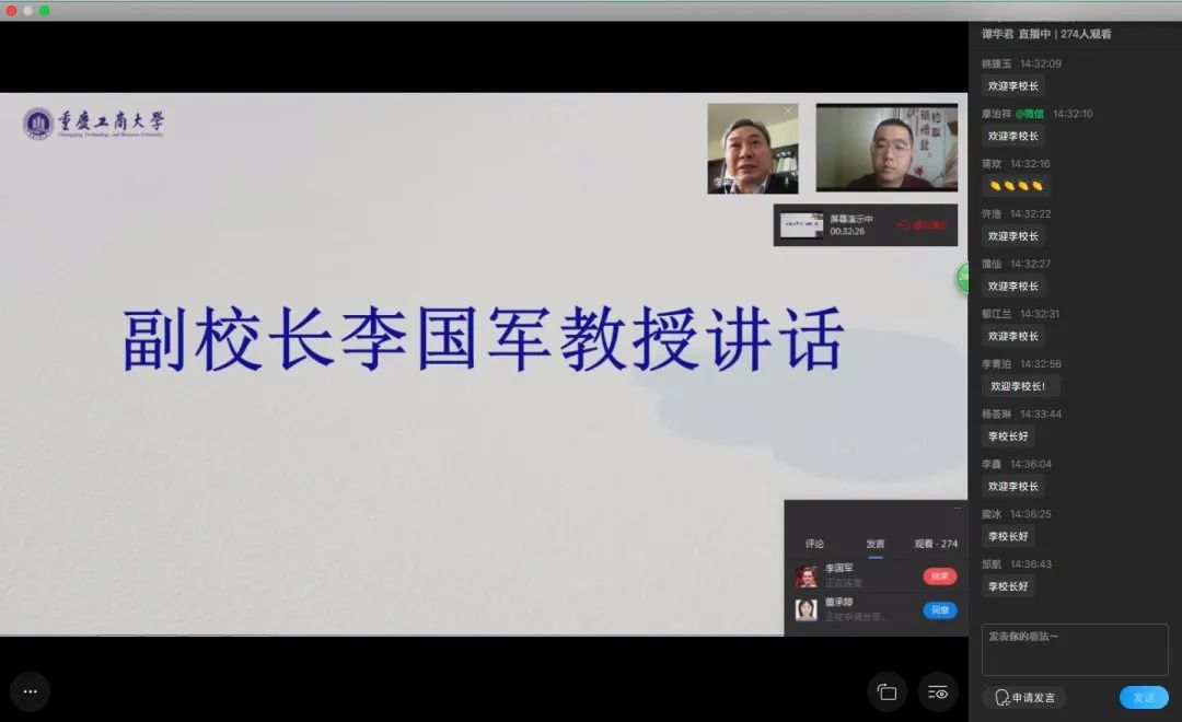 为加强我校研究生科研创新能力培养,鼓励在校研究生积极承担创新型研究课题,4月24日下午,研工部举办了研究生“博闻沙龙”第三期之“创新型科研项目申报那点事儿”线上直播活动。副校长李国军,研工部副部长王燕,研工部董承婷老师以及300余名研究生参加了活动。