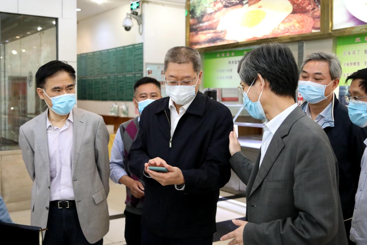 4月29日,市委教育工委书记、市教委主任黄政一行来到米兰网站检查疫情防控及开学前准备工作,黄政走进学校食堂,了解食堂取餐用餐、错峰就餐等情况,检查饭菜质量及食品卫生;检查学校开学前防控物资储备和设置隔离点情况,在学校健康观察点向医务人员表示感谢。黄政要求,一定要把疫情防控工作作为当前重中之重的任务,切实保障师生员工的身体健康和生命安全,从严从实从细从快落实好各项防控措施,坚决打赢高校开学复课这场疫情防控阻击战。