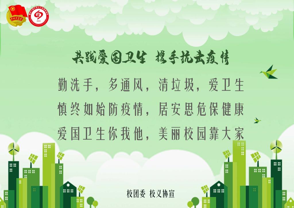 抗击疫情,共克时艰。随着新学期、新任务的到来,为响应和落实好疫情防控常态化管理的要求,号召全校同学认真学习爱国卫生知识,弘扬爱国卫生精神,养成良好健康的生活习惯,抵御病毒侵扰,携手抗击疫情,校团委组织校义工志愿者协会开展了爱国卫生主题系列活动。
